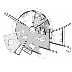 Larger living area on upper level opens onto balcony